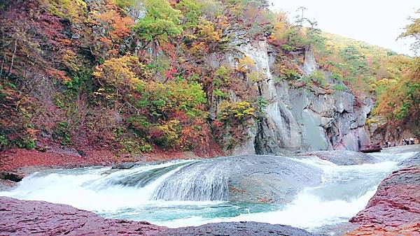 是個小瀑布 , 可與對面岩石峭壁上的楓葉入鏡 , 流水與楓葉很漂亮 , 像話依樣流線漂亮
