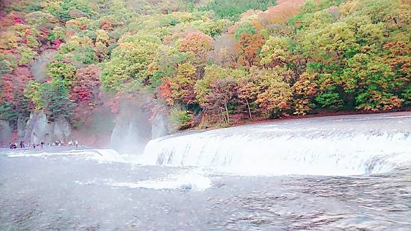 過了彎角後可以看到今天的主角—吹割瀑布(吹割の滝)yeah出現了心理呼喊著