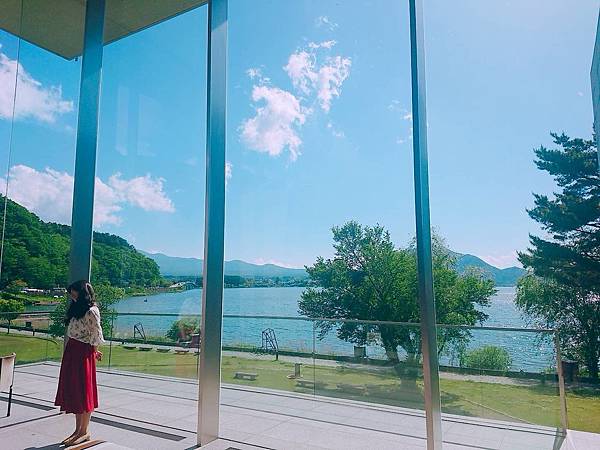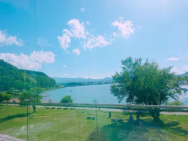 不過有公共區域可以拍大落地窗外的河口湖景色