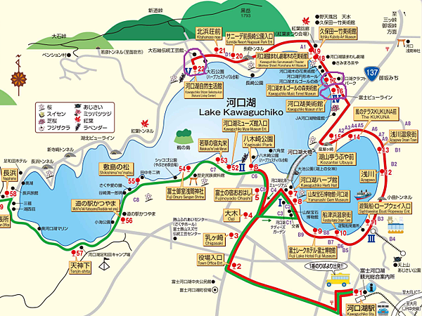 搭著周遊巴士拿著行李直接飛奔到河口湖美術館(紅線NO16)